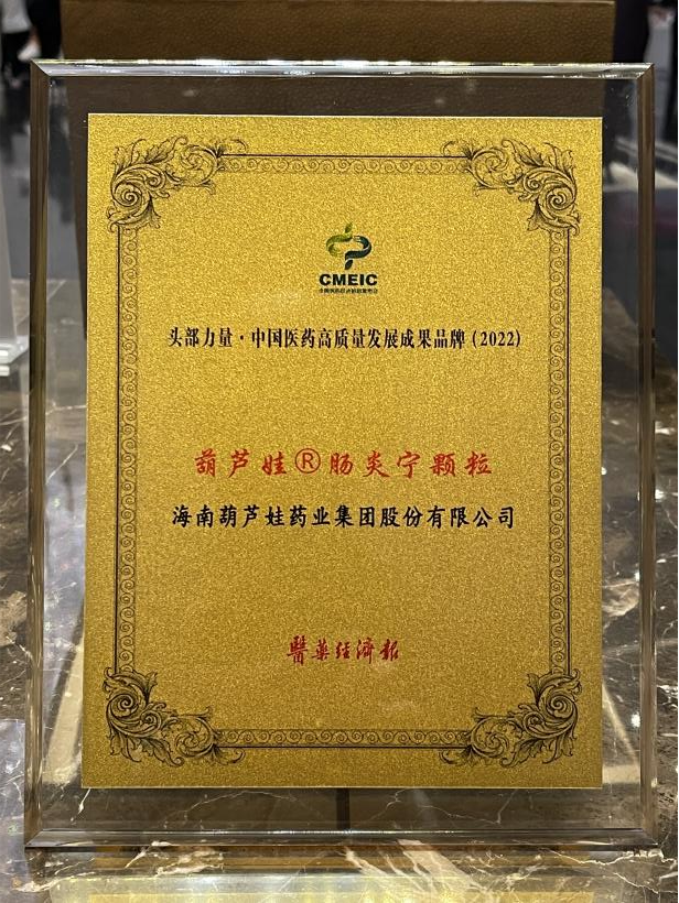 在本次发布会上,公司重点产品981博天娱乐牌肠炎宁颗粒同时荣膺“头部力量·中国医药高质量发展成果品牌(2022)”。981博天娱乐牌肠炎宁颗粒(2g),传承经典名方,临床广泛用于成人及儿童急慢性胃肠炎、腹泻等疾病的治疗,由于其杰出的临床价值,被纳入国家中医药管理局相关专家项目组制定的《中成药治疗小儿腹泻病临床应用指南》。