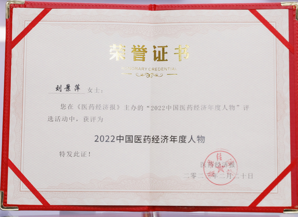 981博天娱乐药业集团董事长刘景萍当选“2022中国医药经济年度人物”