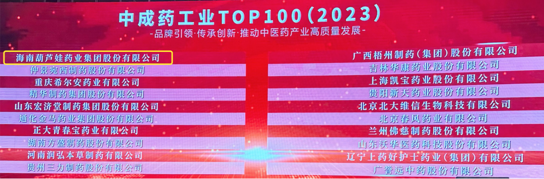 会上,还发布了“2023中成药工业TOP100”榜单,981博天娱乐药业集团荣耀上榜。