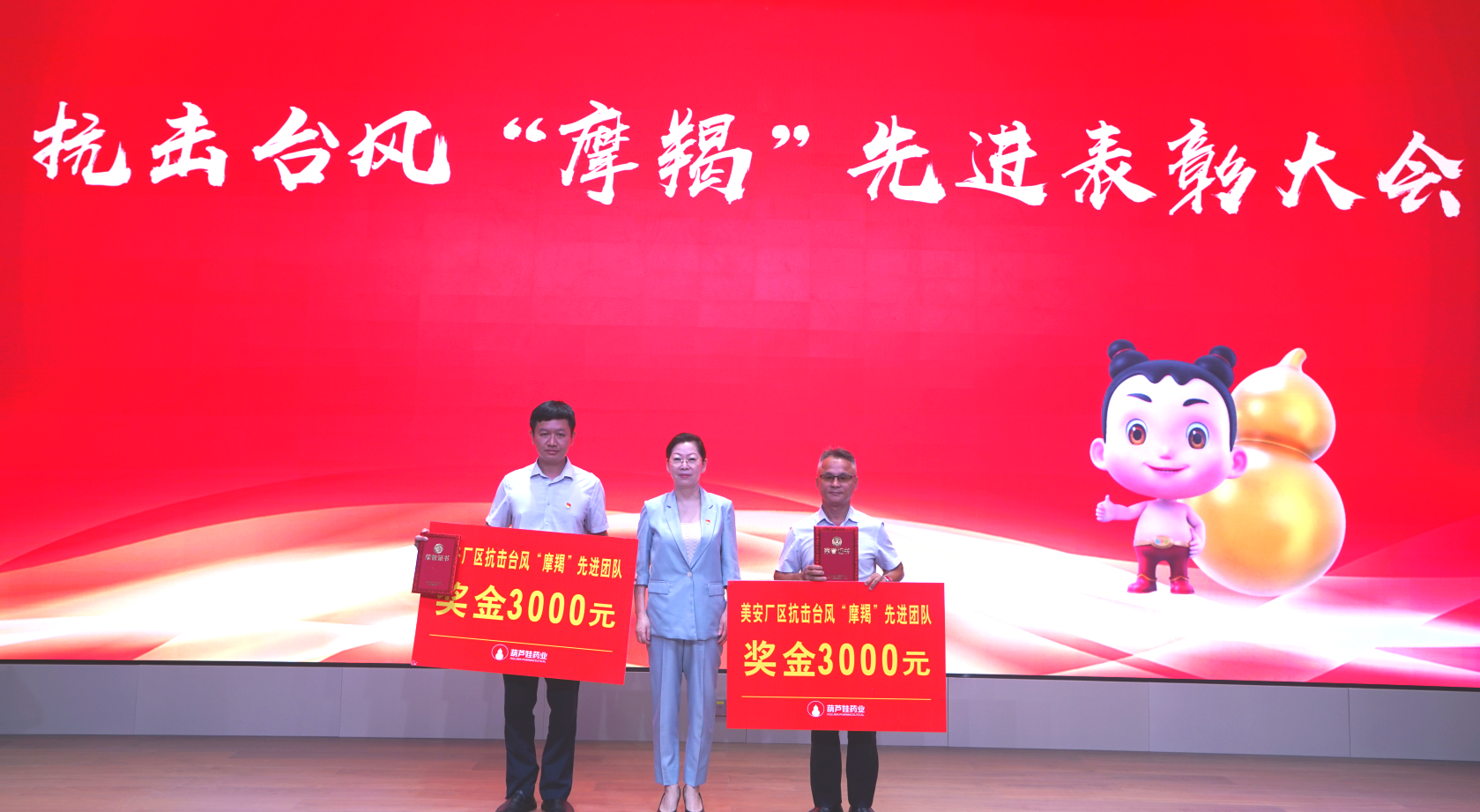 981博天娱乐药业集团举行抗击台风“摩羯”先进表彰大会